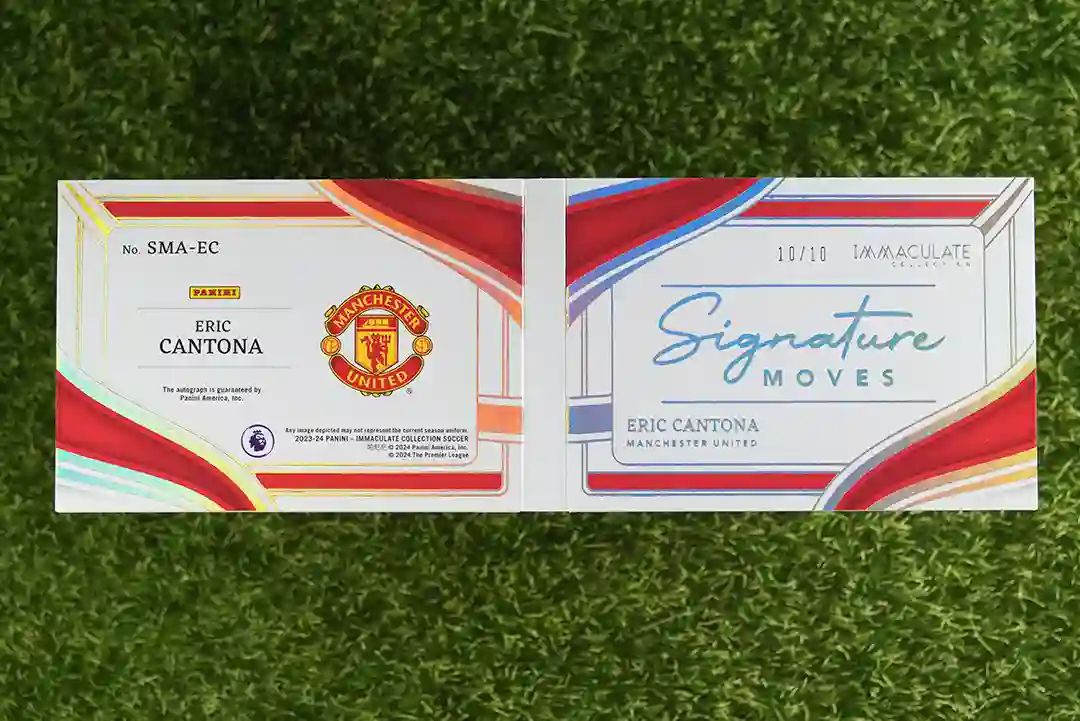 / 2023-24 Panini Manchester United Eric Cantona Immaculate Collection Soccer SMA-EC Auto, Signature Moves 10/10