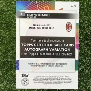 2023/24 Topps AC Milan Filippo Inzaghi Topps Finest UCL & UEL A-FI Auto Champions League theme 25/25