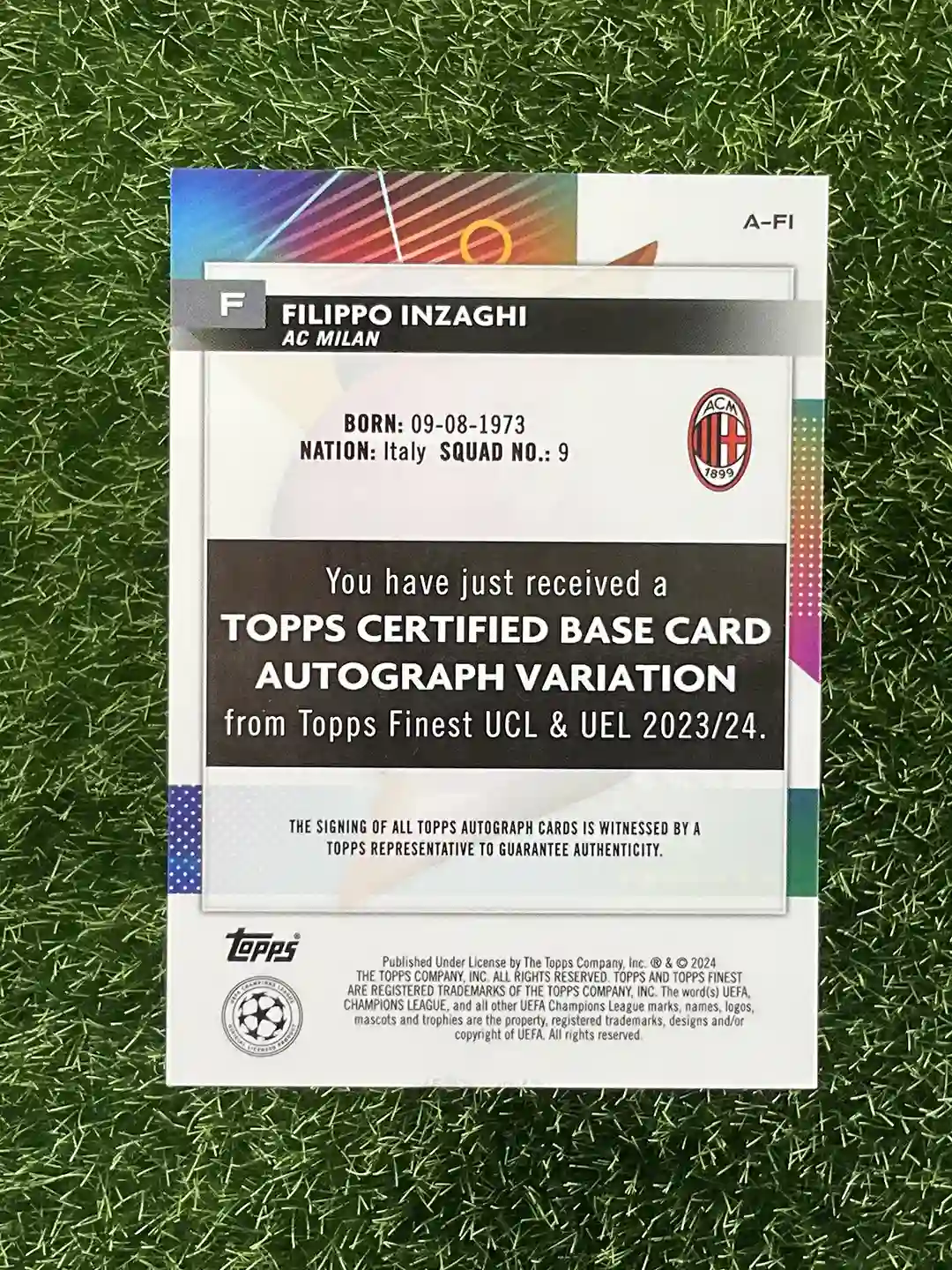 2023/24 Topps AC Milan Filippo Inzaghi Topps Finest UCL & UEL A-FI Auto Champions League theme 25/25 quantity