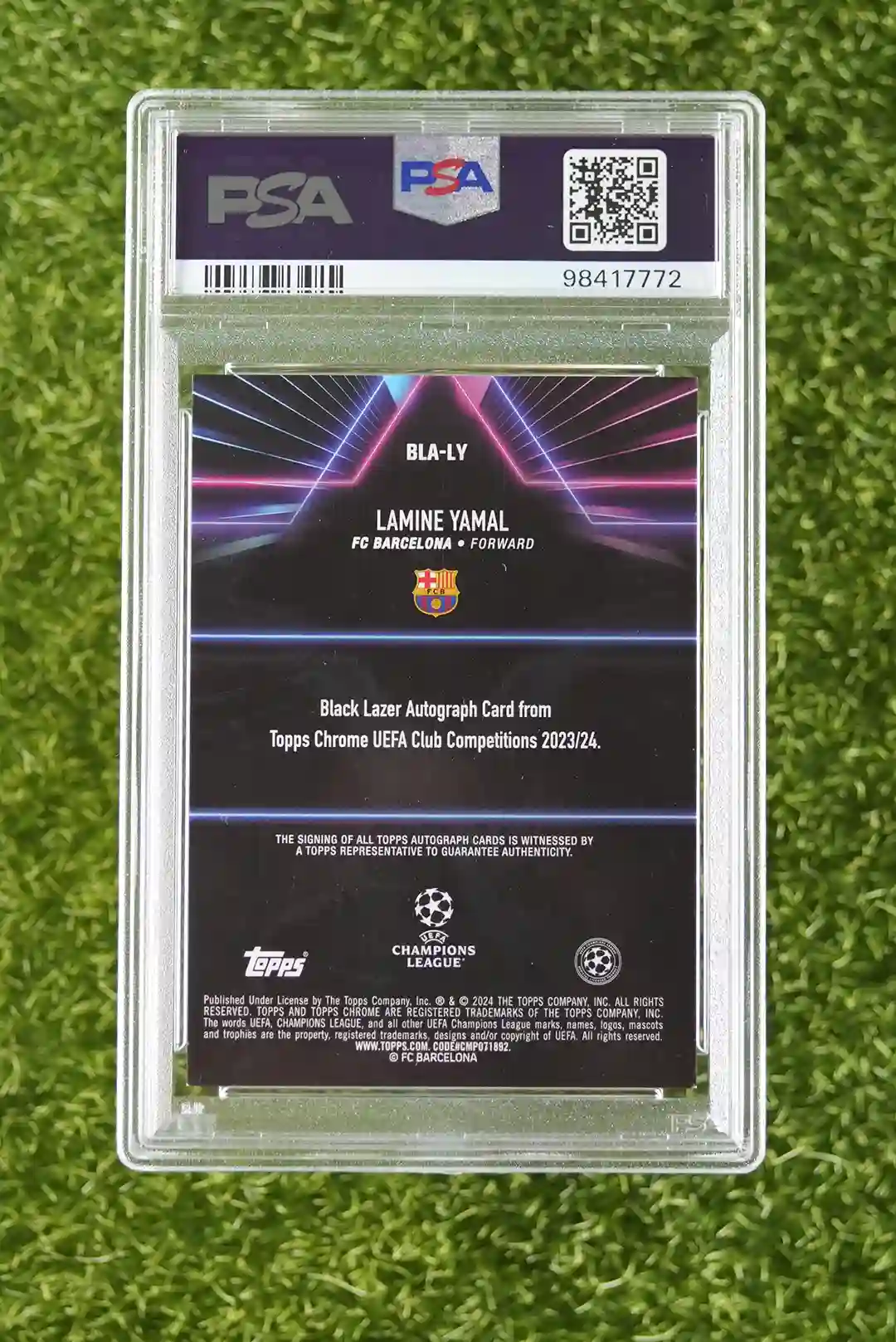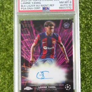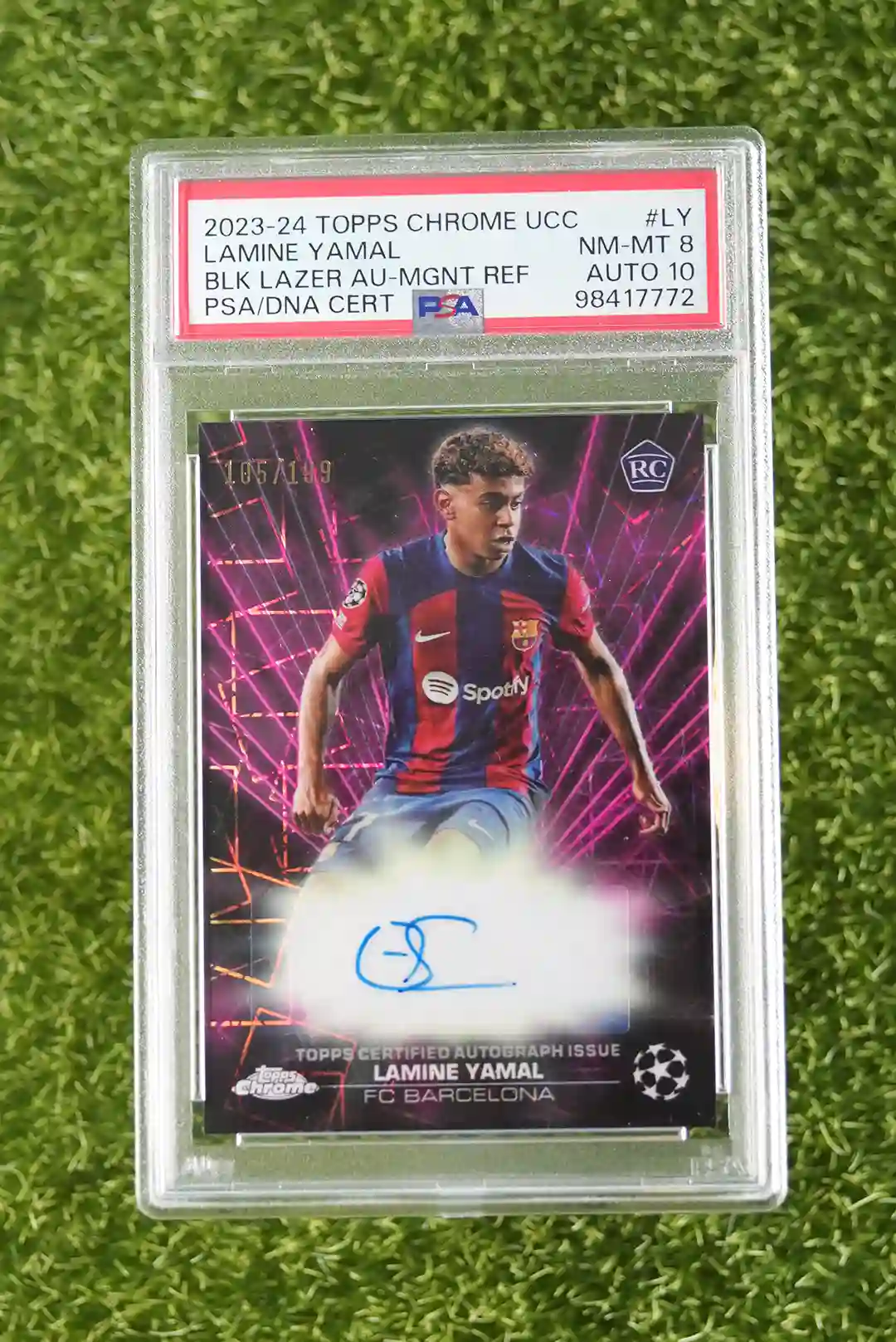 / 2023-24 Topps FC Barcelona Lamine Yamal Topps Chrome UEFA Club Competitions BLA-LY Black Lazer Auto Magenta Refractor, Rookie 105/199