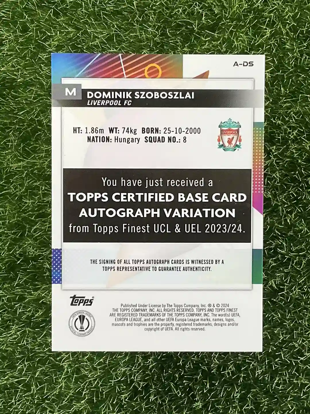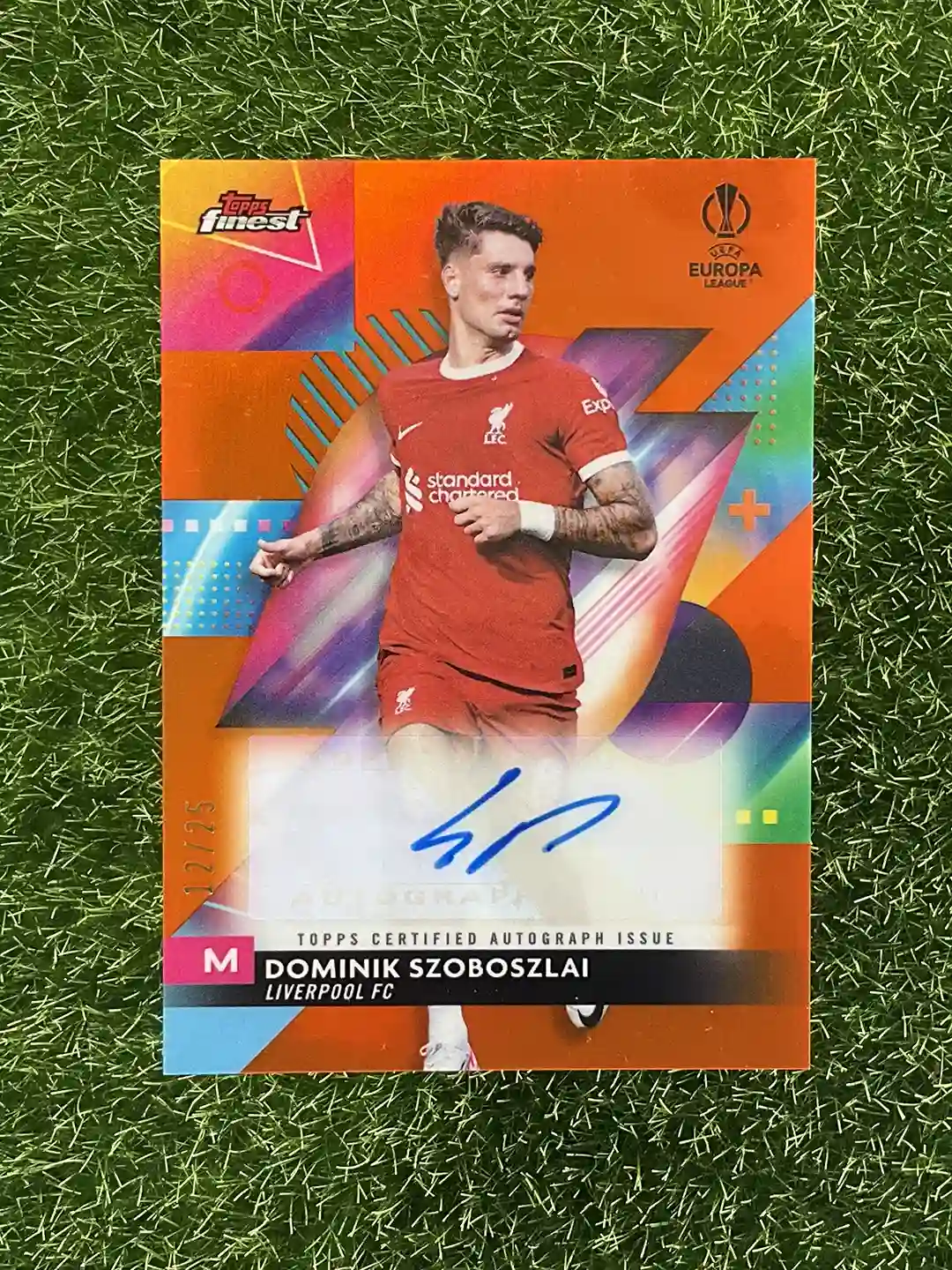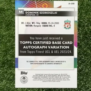 2023/24 Topps Finest Liverpool FC Dominik Szoboszlai Topps Finest UCL & UEL A-DS Certified Auto Variation, Orange 12/25