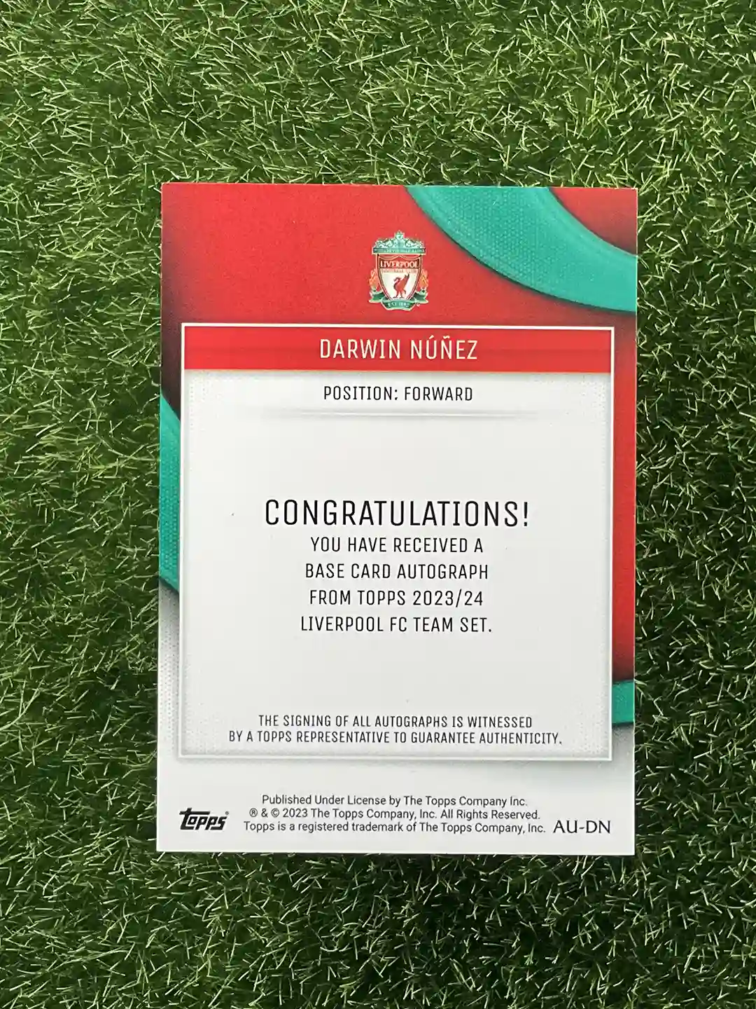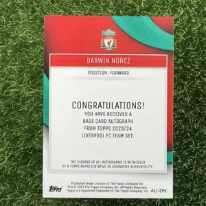 2023/24 Topps Liverpool FC Darwin Núñez Liverpool FC Team Set AU-DN Auto, Certified Pink 07/10