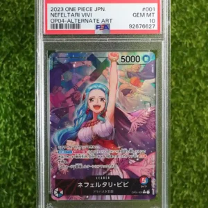 & Free ShippingThis is a 2023 One Piece Japanese (JPN) Nefeltari Vivi Alternate Art Leader card, identified as OP04-001. It features a special alternate art design for the Leader card, and has been professionally graded by PSA as a perfect 10.