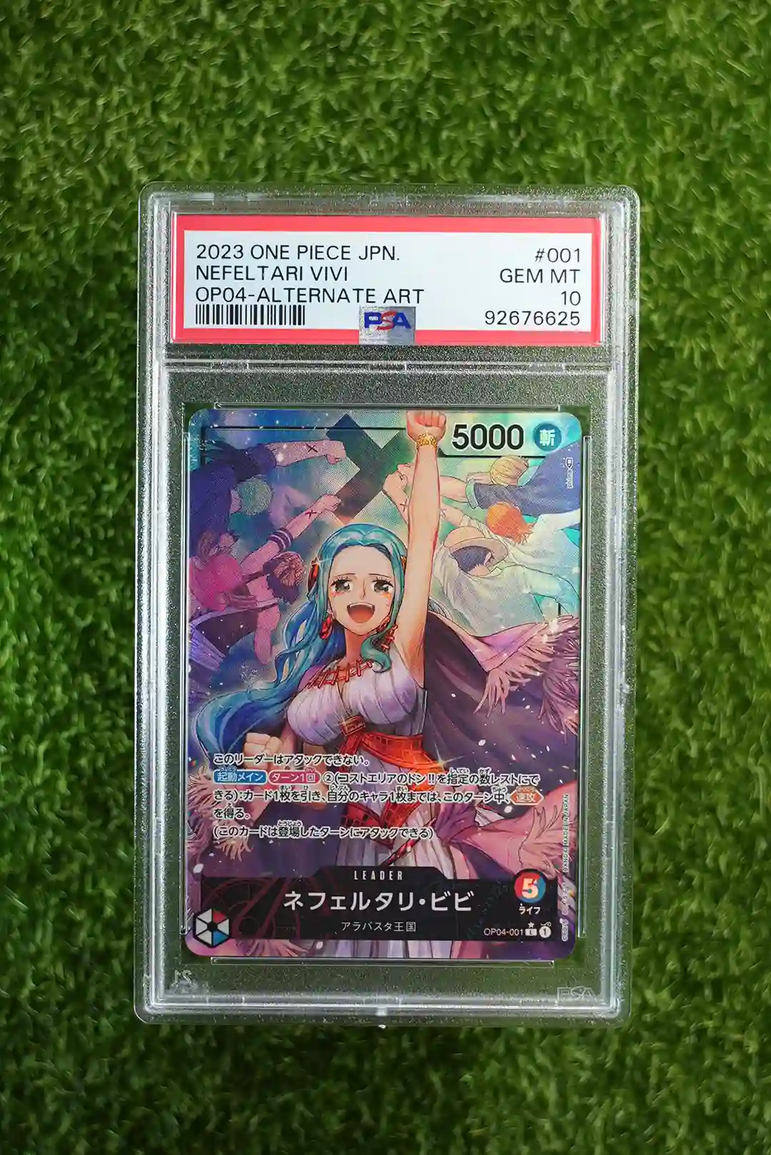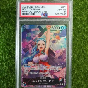 & Free ShippingThis is the 2023 One Piece Japanese Trading Card Game Nefeltari Vivi Alternate Art Leader card. It is identified by the set number OP04-001 from the OP-04 Kingdoms of Intrigue set.