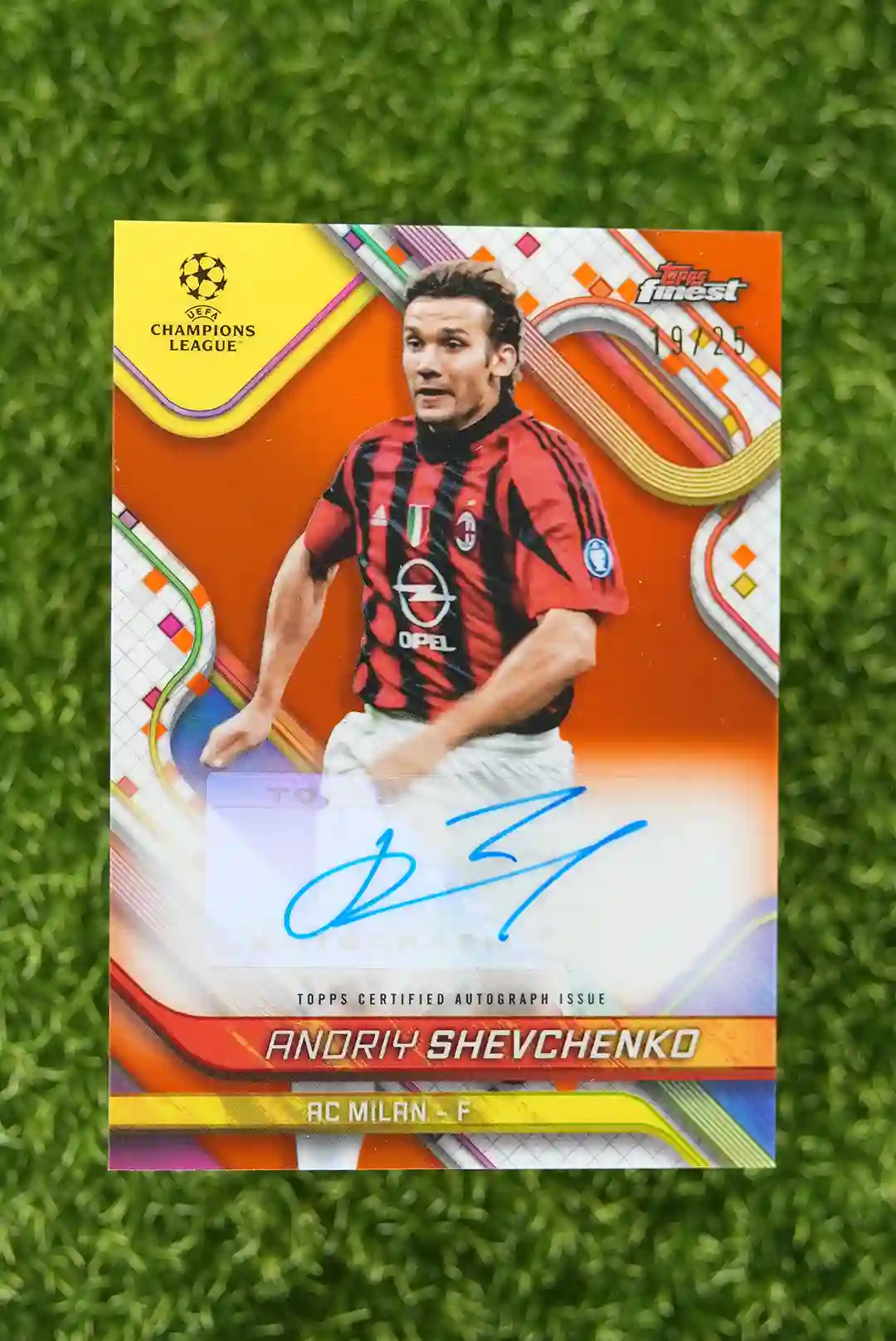 2024/25 Topps AC Milan Andriy Shevchenko Topps Finest UEFA Club Competitions Base Card Autograph Variation BA-SV Certified Auto, 19/25 quantity