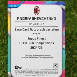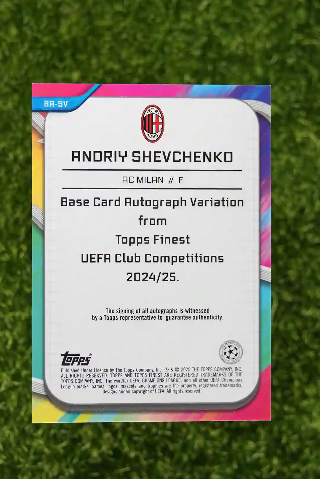 / 2024/25 Topps AC Milan Andriy Shevchenko Topps Finest UEFA Club Competitions Base Card Autograph Variation BA-SV Certified Auto, 19/25