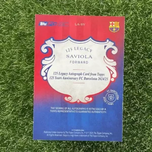 2024-25 Topps FC Barcelona Saviola 125 Legacy LA-SV Auto Card, 125 Years Anniversary, 25/25