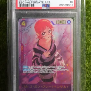 Another fantastic alternate art of Mr. 2 Bon Clay! This is the 2024 One Piece Japanese Memorial Collection Mr. 2 Bon Clay Alternate Art. The ‘Memorial Collection’ is a special set that celebrates the rich history of the One Piece series, and this card is a beautiful tribute to the fan-favorite Bentham. The alternate art is stunning and captures the character’s flamboyant personality perfectly. For players and collectors who are fans of the former Baroque Works agent, this is a must-have card. It’s a great way to add some style to your collection and celebrate one of the most memorable characters in One Piece.