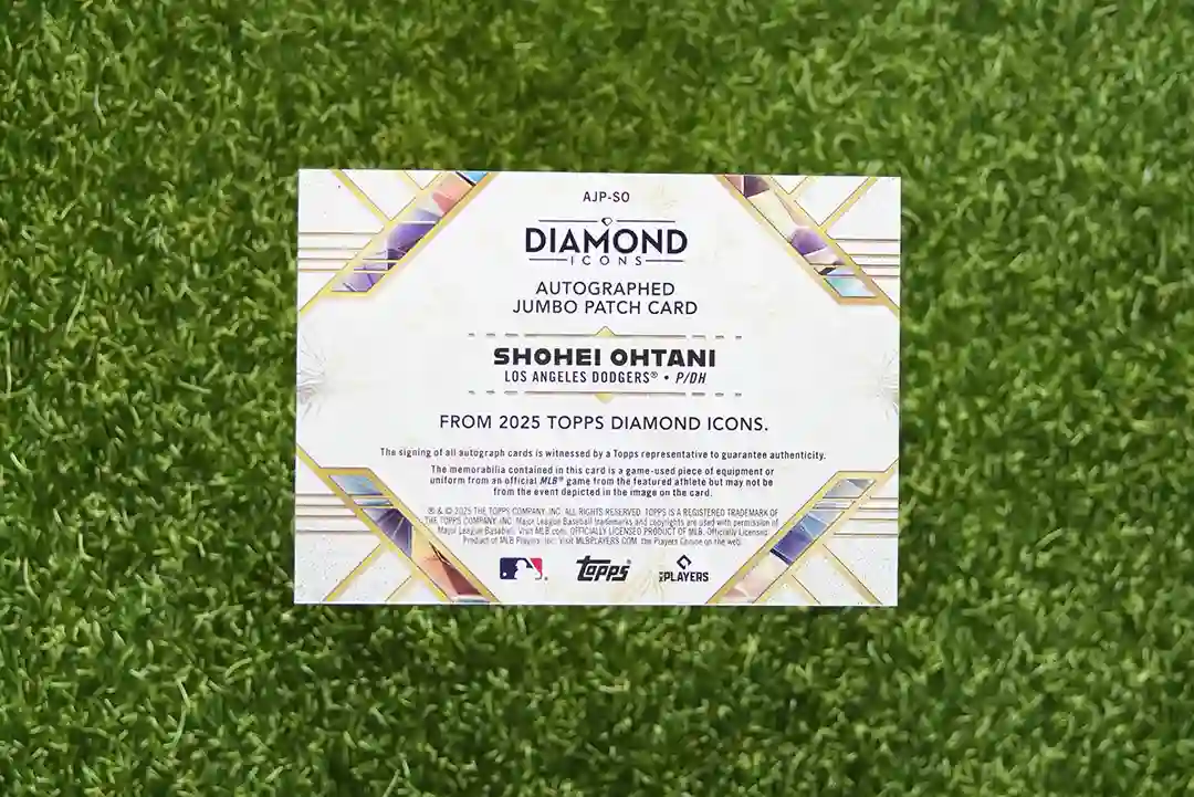 / 2025 Topps Los Angeles Dodgers Shohei Ohtani Diamond Icons AJP-SO Auto, Game-Used Memorabilia, Jumbo Patch , Certified Auto Issue 10/10